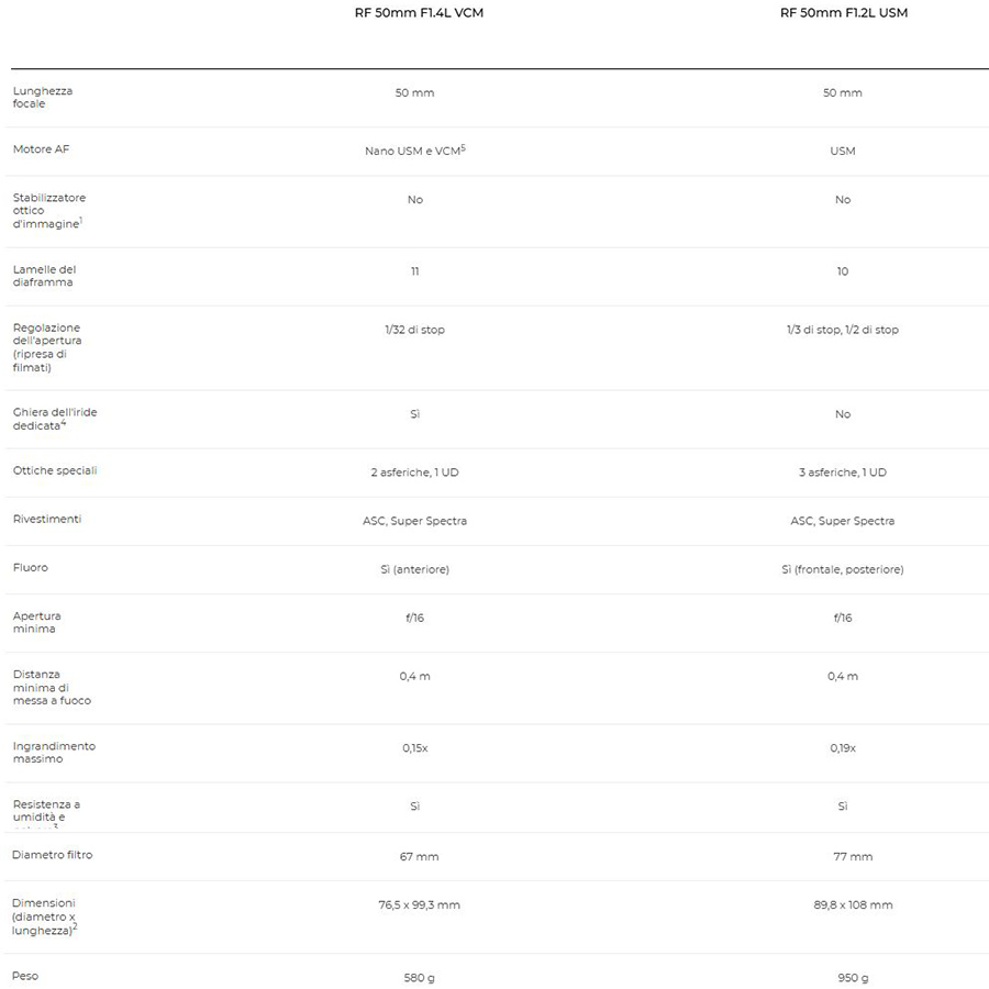 Ecco le principali differenze tra RF 50mm F1.4 ed RF 50mm F1.2: