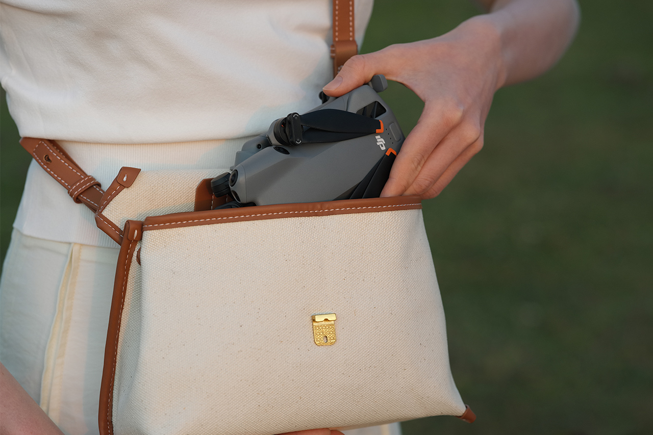 Il Mini 5 Pro rimane fedele alla filosofia DJI: compatto, pieghevole e facile da trasportare ovunque.