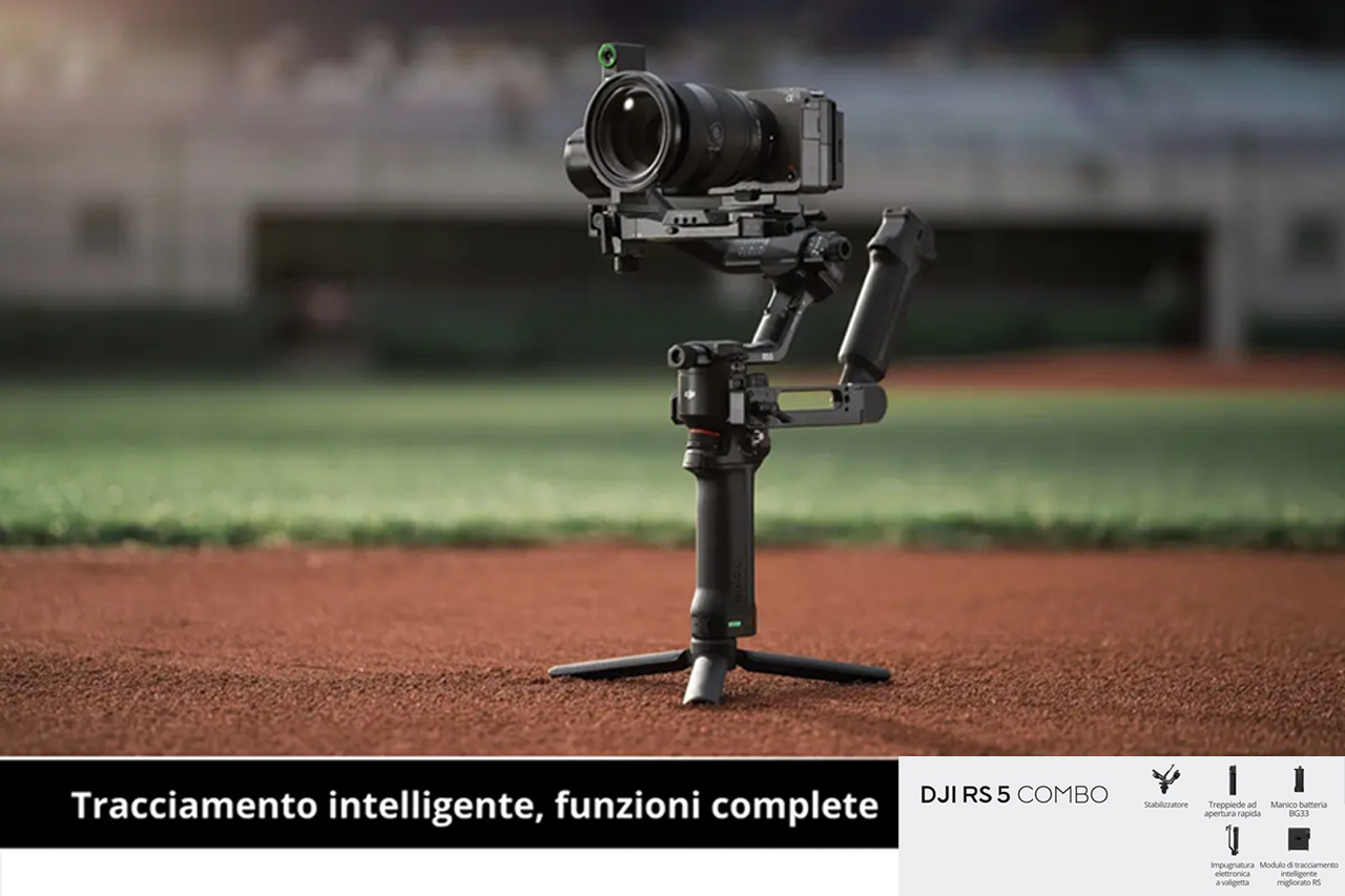 Il DJI RS 5 Combo è uno stabilizzatore professionale di nuova generazione, progettato per offrire prestazioni elevate, controllo avanzato e massima fluidità nelle produzioni video moderne. Pensato per filmmaker, videomaker e content creator professionali, combina potenza, leggerezza e tecnologie intelligenti in un corpo compatto e robusto.