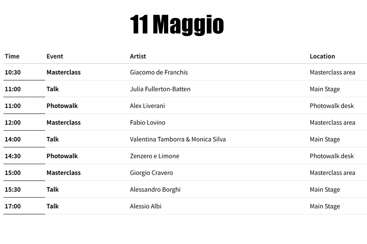 Per due giorni, la storica location di Torneria Tortona si trasforma in un hub creativo. Sarà infatti possibile incontrare ospiti di fama internazionale, partecipare a masterclass uniche, unirsi a photowalk alla scoperta di Milano, seguire dimostrazioni pratiche e partecipare a mostre esclusive. Due giorni all’insegna dell’arte visiva con un programma ricco di contenuti e incontri e per fotografi, videomaker e appassionati.