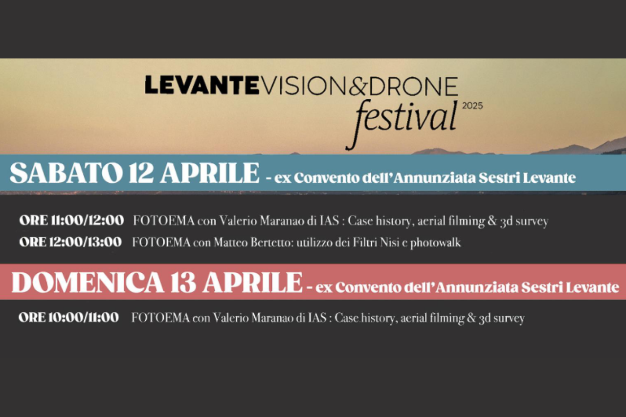 Il mondo dei droni, della fotografia e del videomaking è pronto a decollare ancora una volta. Il 12 e 13 aprile, l’ex Convento dell’Annunziata di Sestri Levante ospiterà l’edizione 2025 del Levante Drone & Vision Festival, il più importante evento italiano dedicato a droni, fotografia e videomaking.