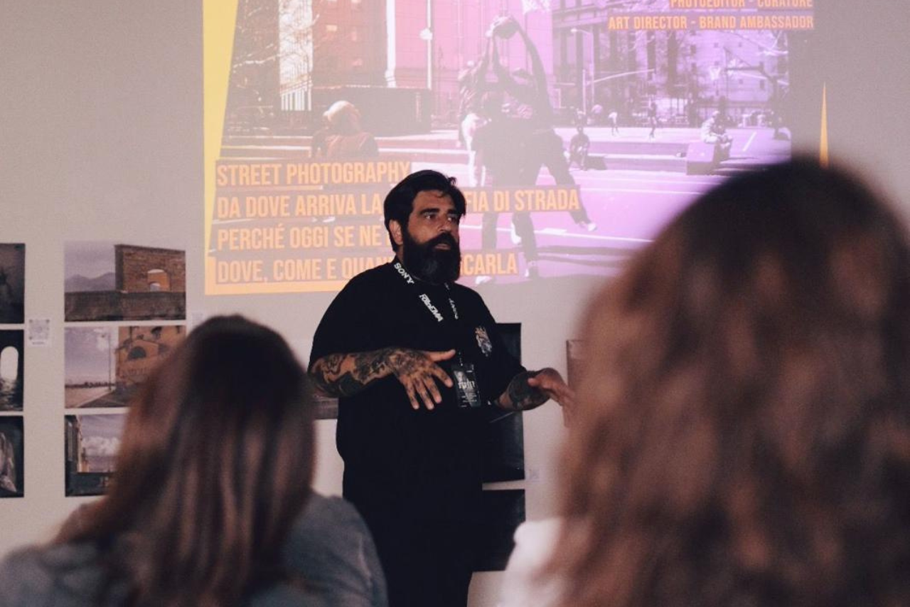 Durante la parte teorica, Ferrillo ha proposto spunti di riflessione, nozioni sulla legge in materia di street photography, aneddoti ed esercizi mirati per affinare lo sguardo, stimolando ognuno a uscire dai propri schemi e ad affrontare la strada con occhi nuovi.